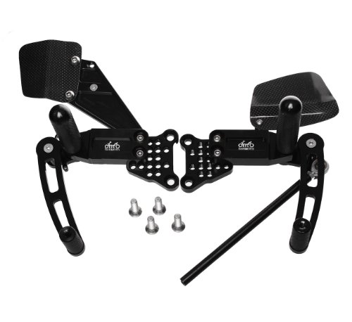 FeaturesAll Parts are made from 6065T6 Billet aluminum, made on a precise 5 Axis CNC machine.The surface is hard anodized for a long life time and high wear resistance.The Rearsets have on both sides a carbon fiber heel guard. Real Carbon Fiber, no fake print/plastic!Special designed base plates allow a quick and easy adjustment of the riding position in 10mm steps.A mounting bracket for the stock brake light switch is provided. Kawasaki ZX12R Black Danmoto Billet Rearsets?