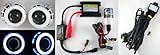 v5 Mini h1 Bi-xenon Projectors + Dual CCFL Chrome Shrouds + Ultra Slim 35w ballasts + h1 HID bulbs + h4 CANBUS wiring harness Complete Headlight Retrofit Kit