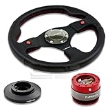 NRG-SRK-E36H+007R+200RD, NRG Innovations 12.5" 320mm Black Leather Red Stitch Dual Horn Button Racing Steering Wheel Combo with 6 Hole Short Hub Adapter with Gen 2.0 Red Quick Release Kit SRK-E36H