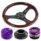 NRG-SRK-150H+200PP+101PP+015RBK, NRG Innovations 13" 330mm Deep Dish Style Wood Grain Black Spokes Racing Steering Wheel Combo with 6 Hole Short Hub Adapter with Gen 2.0 Purple Quick Release with Purple Lock Hub Kit SRK-150H