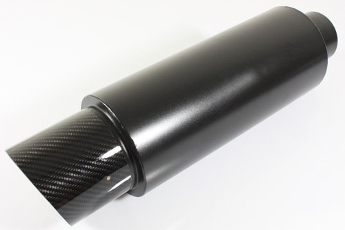 Universal N1 Style 3" Inlet/4" Outlet Performance Muffler Exhaust With Real Carbon Fiber Wrapped Slant Tip And Matte Black Canister