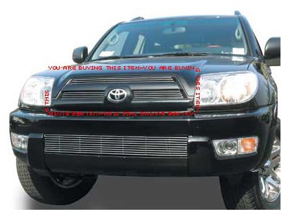 Features3 PC Main Grille InsertBillet Grille Insert Overlay/Bolt On - 3 Pc (344 Bars)Polished ChromeMade of Aircraft Quality T-5/T-6 Billet AluminumAll Hardware & Installation Instructions Are Included. 2003-2005 TOYOTA 4RUNNER BILLET GRILLE GRILL?